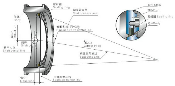 1、采用三維偏心的密封結構,閥座與蝶板之間磨損小,且密封面耐磨損,延長了使用壽命;
